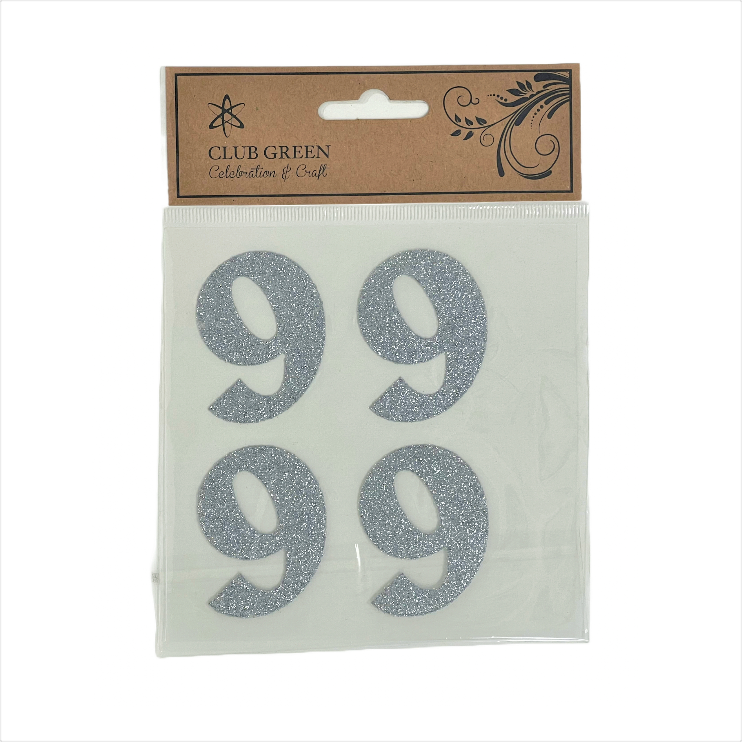 9' Silver Glitter Numbers 4Pcs 40X34mm