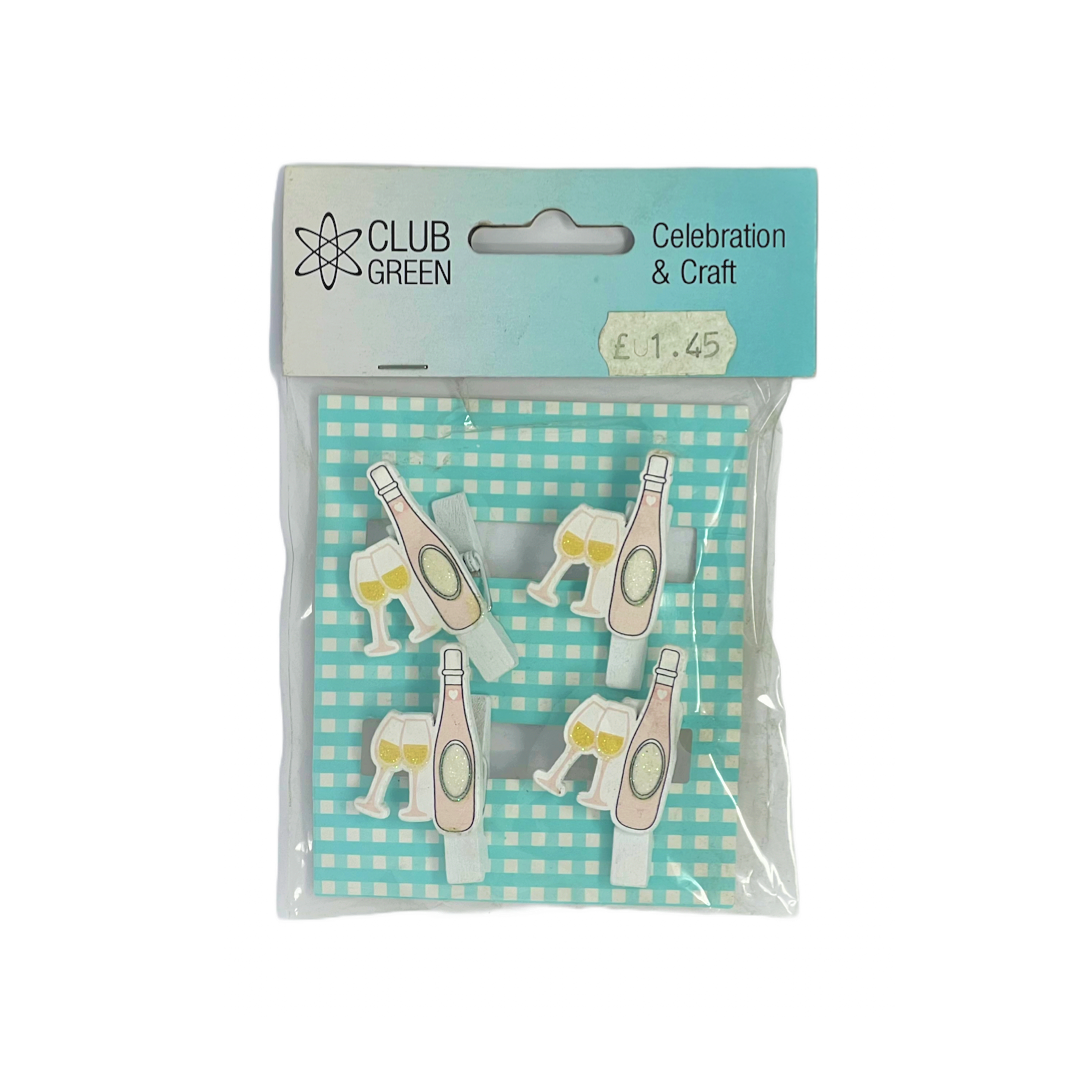 Champagne Bottle Wooden Clip Pk/4