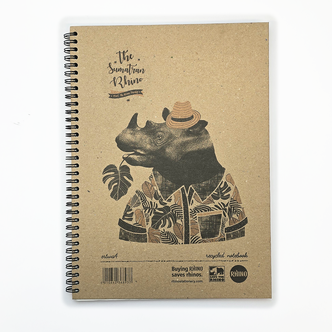 Strong, resilient, and treasured, this Rhino Recycled A4 hardback notebook takes its inspiration from the breathtaking rhinos of the world. Beneath a rugged exterior, you can let your imagination roam free on 160 pages of ruled paper – and write with all the elegance of our majestic friends.