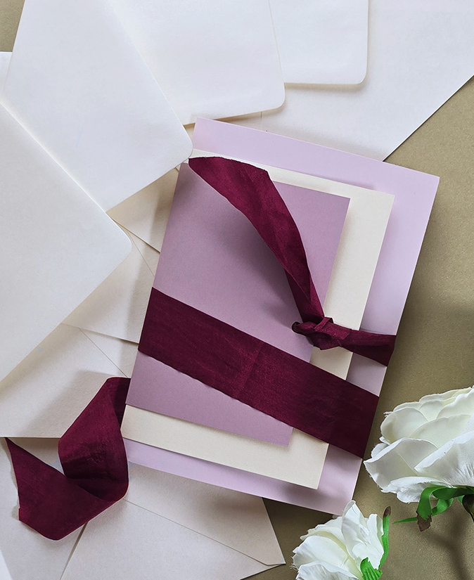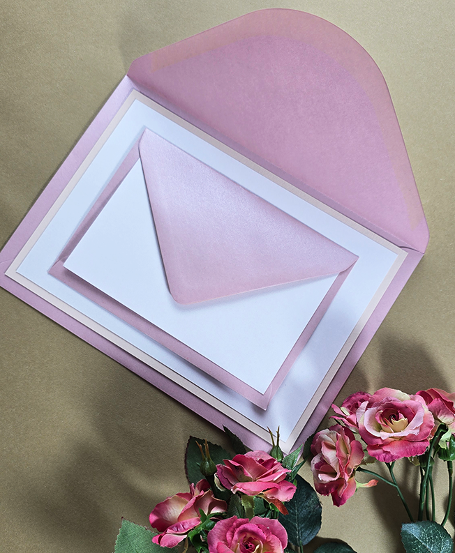 Your envelopes are your secret weapon. Quality envelopes (115gsm or above) will catch the eye of the postie delivering them, and premium pearl envelopes will have them asking your recipient if they need a plus one.