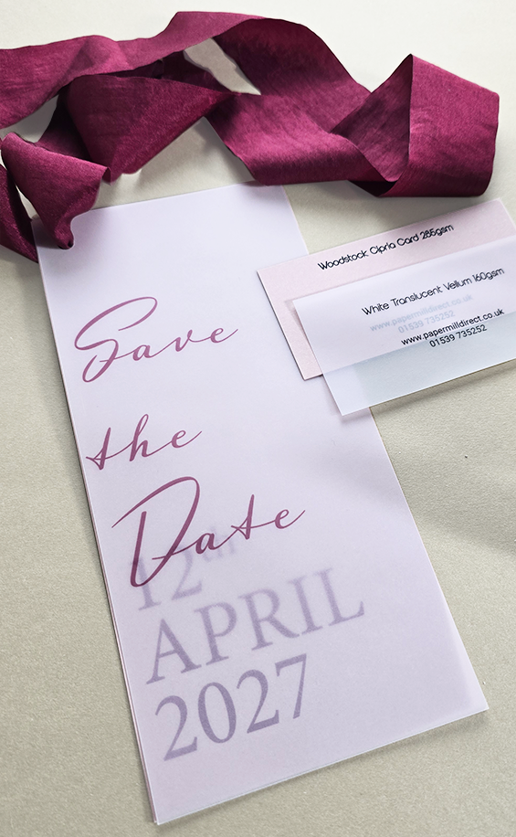 Save The Date - White Translucent Vellum 160gsm cut to 100mm x 210mm